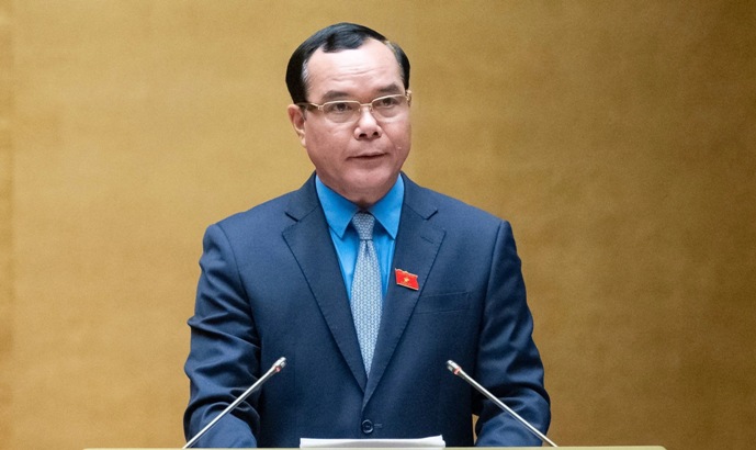 | Chủ tịch Tổng Liên đoàn Lao động Việt Nam Nguyễn Đình Khang trình bày Tờ trình về dự án Luật Công đoàn (sửa đổi). Ảnh: TL. |