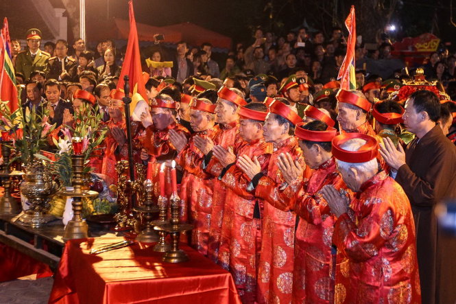 Đúng 22g, lễ dâng hương, rước kiệu ngọc, và khai ấn do UBND TP Nam Định chủ trì, diễn ra tại Tiên Miếu nhà Trần (phủ Thiên Trường xưa) bắt đầu, với sự tham dự của 14 cụ cao niên phường Lộc Vượng.