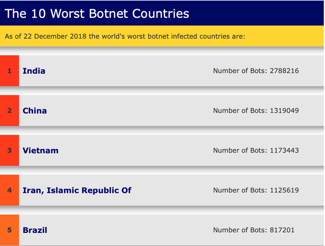 Hai quốc gia đứng đầu hiện nay là Ấn Độ với 2,78 triệu và Trung Quốc với 1,31 triệu "máy tính ma".