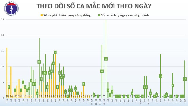 Đến chiều 21/7, Việt Nam có tổng cộng 396 ca mắc Covid-19