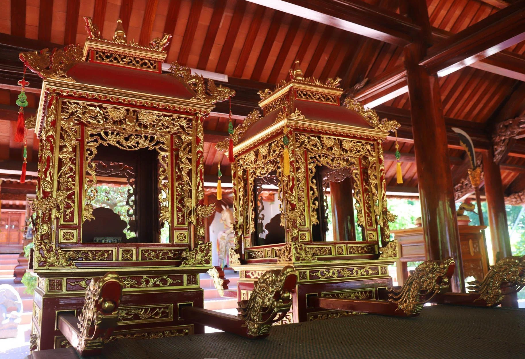 Kiệu của hai vị dũng tướng họ Trần được chạm trổ tinh xảo.