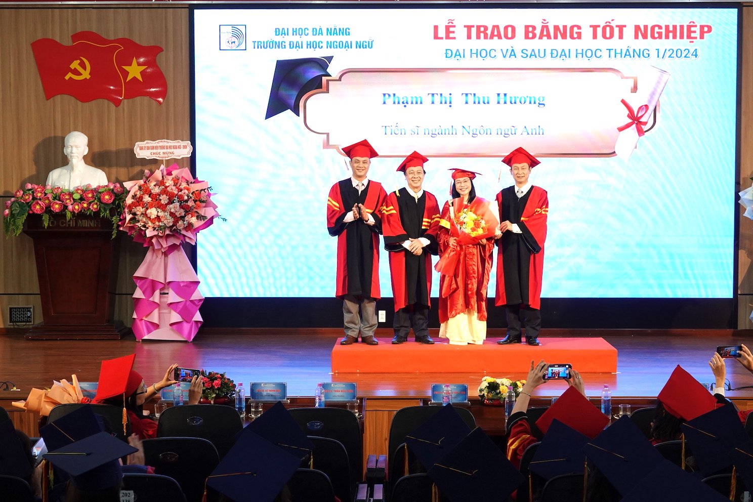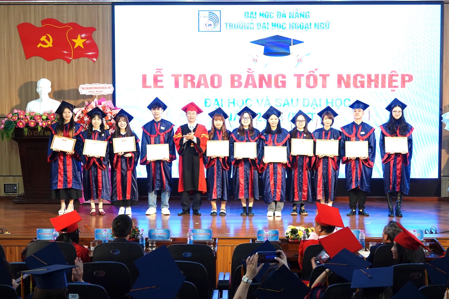 Tại buổi Lễ, trường Đại học Ngoại ngữ - Đại học Đà Nẵng đã trao bằng tốt nghiệp cho 01 tân tiến sĩ, 03 tân thạc sĩ, 477 tân cử nhân.
