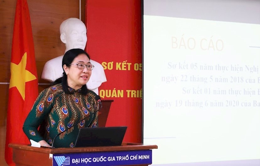 | TS Lê Thị Ngọc Điệp - Phó Trưởng Ban Tuyên giáo Đảng ủy ĐHQG-HCM báo cáo sơ kết 5 năm triển khai thực hiện Nghị quyết 35 |