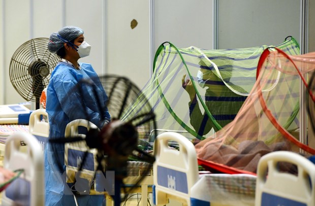 Nhân viên y tế kiểm tra tình trạng bệnh nhân COVID-19 tại một bệnh viện dã chiến ở New Delhi, Ấn Độ. (Ảnh: THX/TTXVN)