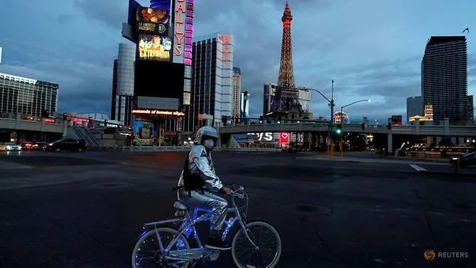 Một người đàn ông đạp xe ở Las Vegas, bang Nevada, Mỹ ngày 10/4. Ảnh: Reuters