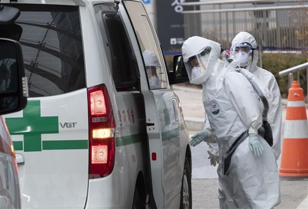 Chuyển bệnh nhân nhiễm COVID-19 tới bệnh viện ở Seoul, Hàn Quốc, ngày 9/12/2020. (Nguồn: THX/TTXVN)