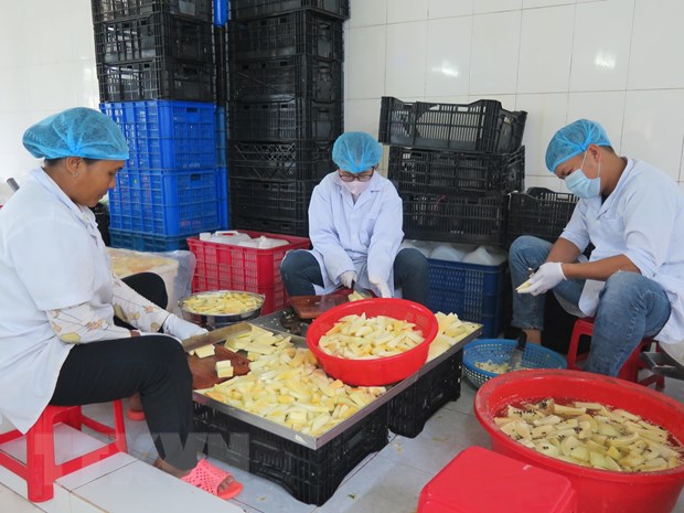 Chế biến đu đủ tại Công ty Chanh Việt Long An. (Ảnh: Minh Hưng/TTXVN)