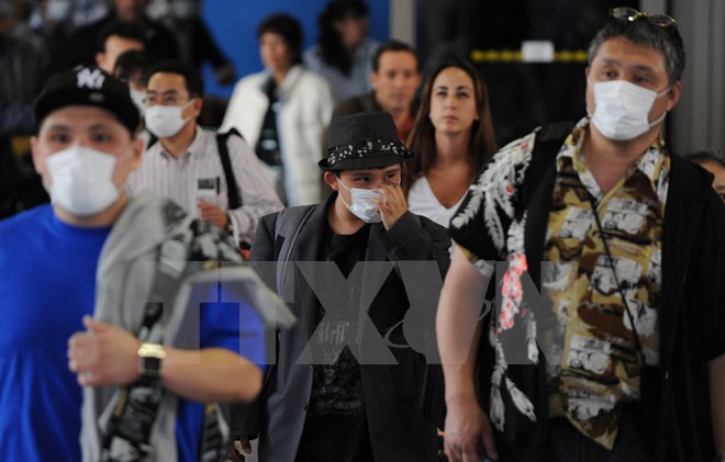 Khách du lịch sử dụng khẩu trang phòng dịch cúm lây lan tại sân bay quốc tế Los Angeles, Mỹ. (Nguồn: AFP/TTXVN)
