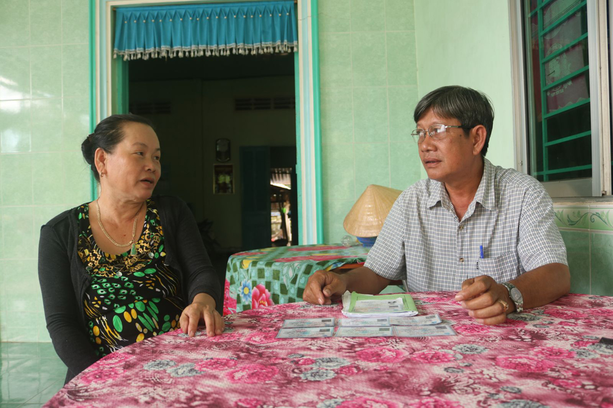 Ông Trần Văn Sáu, Chủ tịch Hội Nông dân xã Trường Thắng vận động hội viên tham gia BHYT.