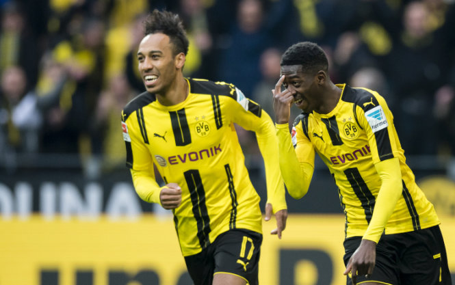 Aubameyang (trái) chưa muốn rời Dortmund. Ảnh: REUTERS