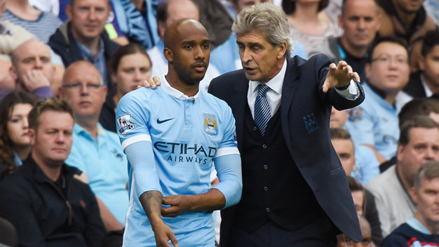 HLV Pellegrini và cầu thủ Fabian Delph - Ảnh: Reuters