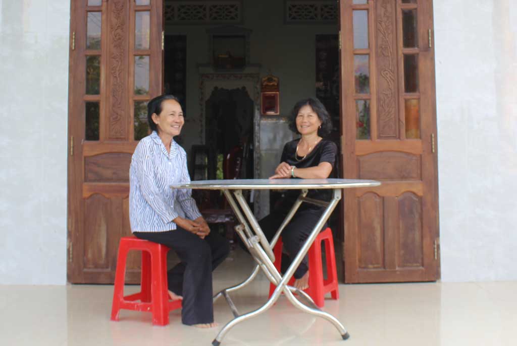 Bà Trần Thị Chính (bìa phải) từng là hộ nghèo nay thoát nghèo và vươn lên là hộ khá, giàu ở địa phương