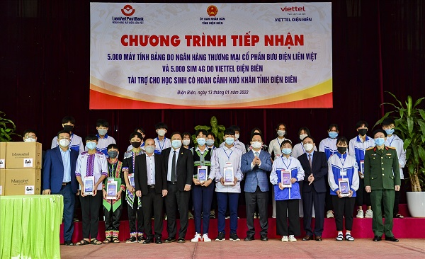 Mới đây nhất, ngày 13/01, tại Trường THPT thành phố Điện Biên Phủ, tỉnh Điện Biên đã tiếp nhận máy tính bảng và sim 4G do Ngân hàng Thương mại cổ phần Bưu điện Liên Việt và Viettel Điện Biên tài trợ. Cụ thể, Ngân hàng Bưu điện Liên Việt đã trao cho tỉnh Điện Biên 5.000 máy tính bảng với tổng trị giá hơn 11 tỷ đồng. Viettel Điện Biên trao tặng 5.000 sim 4G miễn phí data với tổng trị giá 1 tỷ đồng. Đây là những món quà hết sức ý nghĩa nhằm giúp đỡ học sinh có hoàn cảnh đặc biệt khó khăn còn thiếu thiết bị học tập trực tuyến, đặc biệt là học sinh vùng sâu, vùng xa, vùng đồng bào dân tộc thiểu số trên địa bàn tỉnh Điện Biên.