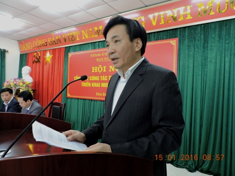 Ban Tuyên giáo các cấp tham mưu, kiện toàn đội ngũ báo cáo viên sau Đại hội Đảng, định hướng tuyên truyền với các cơ quan báo chí: Báo Điện Biên Phủ, Đài Phát thanh - Truyền hình, Sở Văn hóa - Thể thao, Du lịch và 14 cơ quan có ấn phẩm báo chí. Tập trung nhiệm vụ trọng tâm xuyên suốt là làm tốt công tác tuyên truyền phục vụ Đại hội Đảng bộ các cấp, tiến tới Đại hội XII của Đảng. Hướng dẫn, tổ chức việc tham gia ý kiến của cán bộ, đảng viên, nhân dân vào Dự thảo: Báo cáo chính trị Đại hội Đảng bộ các cấp và Văn kiện trình Đại hội XII của Đảng. Đồng thời Ban Tuyên giáo các cấp tích cực tham gia với cấp ủy về nội dung công tác tư tưởng, báo chí, văn hóa, khoa học – công nghệ, giáo dục – đào tạo, các vấn đề xã hội trong quá trình chuẩn bị dự thảo báo cáo tại Đại hội Đảng bộ.
