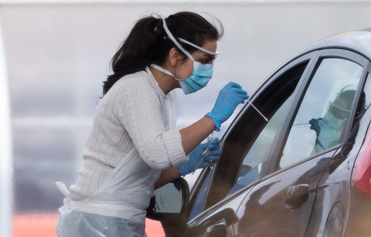 Lấy mẫu xét nghiệm COVID-19 tại một trạm xét nghiệm lưu động ở London, Anh, ngày 31/3/2020. (Nguồn: THX/TTXVN)