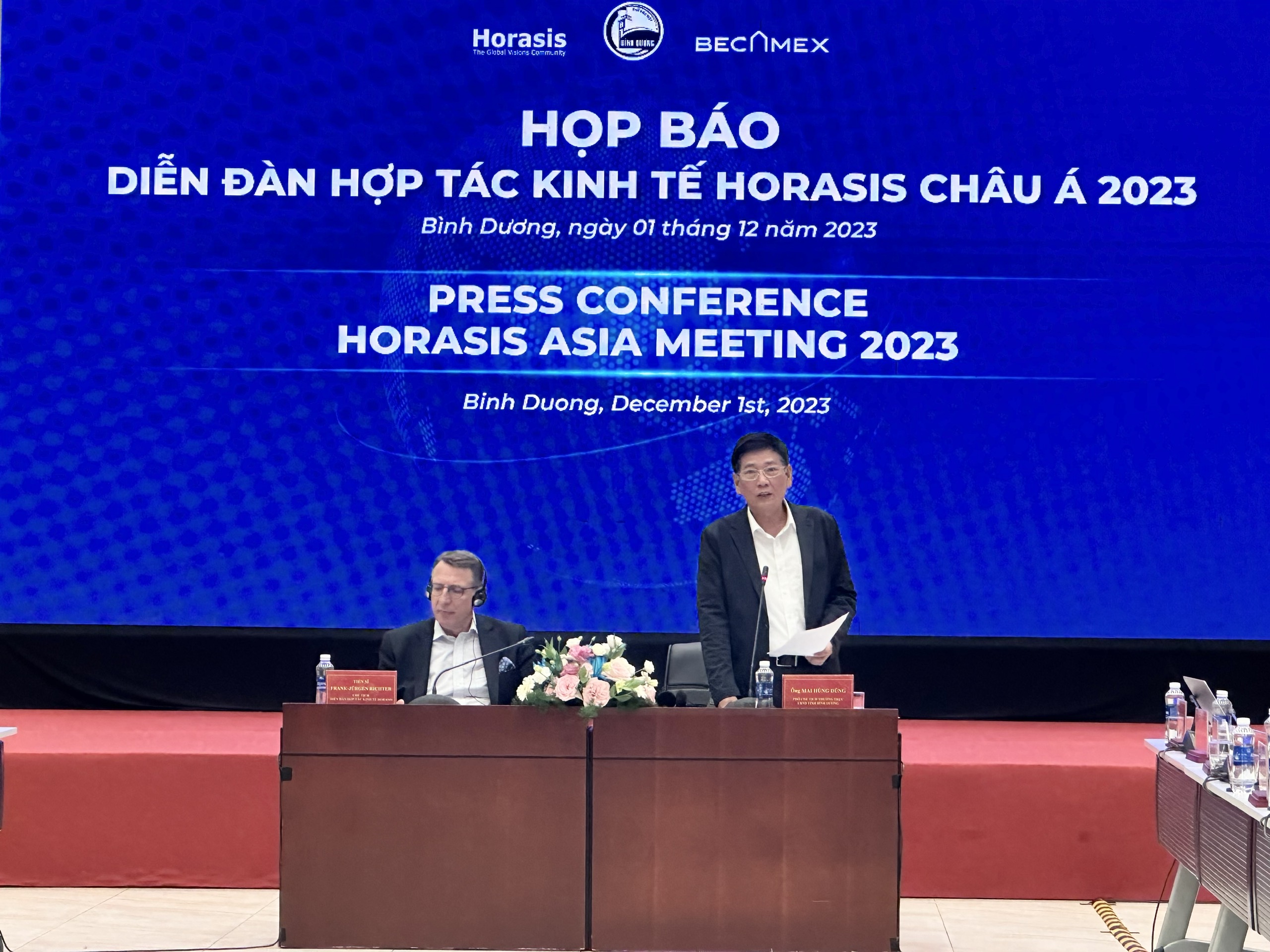 Ngày 1/12/2023, tại Trung tâm Hội nghị và Triển lãm tỉnh Bình Dương, đồng chí Mai Hùng Dũng, Phó Chủ tịch Thường trực Ủy ban nhân dân tỉnh Bình Dương và Tiến sĩ Frank-Jürgen Richter, Chủ tịch Horasis chủ trì họp báo thông tin về sự kiện Diễn đàn Hợp tác kinh tế Horasis Châu Á 2023.