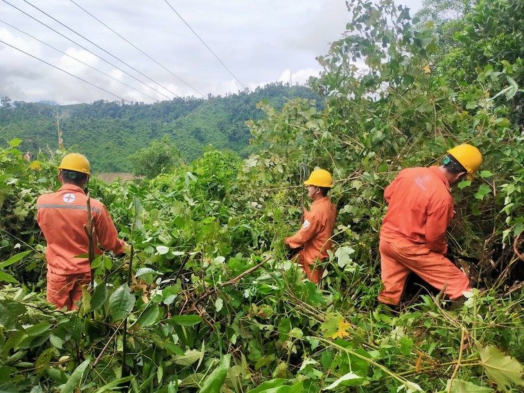 | Công nhân điên lực Quảng Nam phát quang khu vực ảnh hưởng đến đường dây cao thế qua địa bàn tỉnh (ảnh: ĐT). |