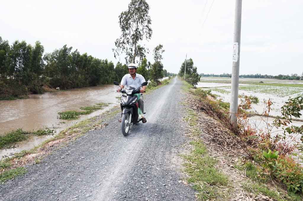 Ông Nguyễn Công Thành, ngụ ấp 1, vui mừng chia sẻ: “Những năm trước, do đường sá nhỏ, hẹp, xe ôtô, xe tải chở vật liệu xây dựng không chạy vào được, người dân muốn xây nhà phải mất rất nhiều chi phí. Bên cạnh đó, hàng hóa, nông sản cũng phải vận chuyển bằng xe máy, rất bất tiện. Năm 2014, khi địa phương có chủ trương mở rộng, láng nhựa đường bờ Tây, người dân đồng tình ngay bởi đây là mong ước từ rất lâu rồi!”.
