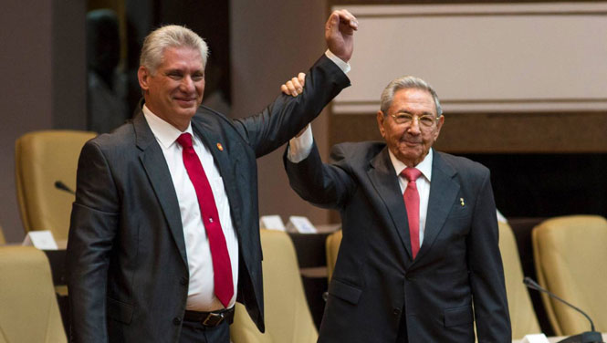 | Đại tướng Raul Castro Ruz (phải) và đồng chí Miguel Diaz-Canel Bermudez. |