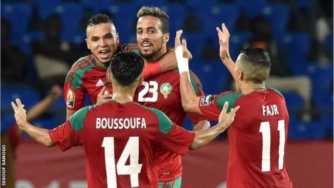 Niềm vui của các cầu thủ Morocco sau khi ghi bàn vào lưới Bờ Biển Ngà. Ảnh: BBC