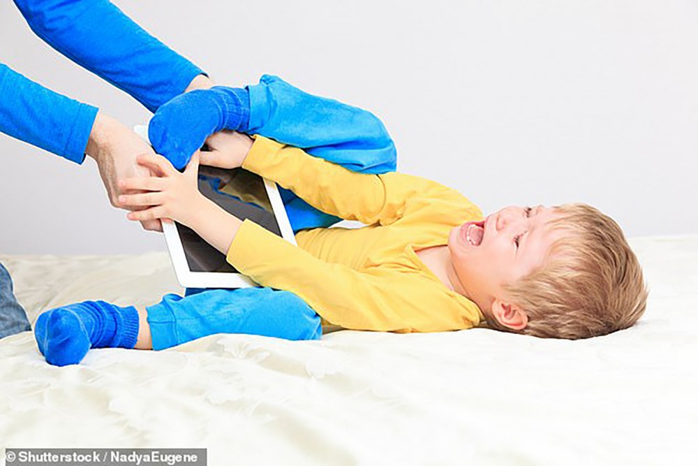 Các chuyên gia nhận thấy nhóm trẻ đã quen với việc được cha mẹ cho chơi thiết bị điện tử để ngưng quấy khóc sẽ có những cảm xúc cực đoan hơn khi thiết bị đó bị lấy đi. Mặc dù để trẻ chơi điện thoại hoặc máy tính bảng có vẻ là một cách vô hại nhằm đánh lạc hướng trẻ vào những lúc quấy khóc, nhưng điều này về lâu dài có thể khiến trẻ phản ứng ngày càng dữ dội hơn mỗi khi không đòi được thứ mình muốn, chẳng hạn như nằm vạ xuống sàn nhà, khóc lóc và la hét inh ỏi.