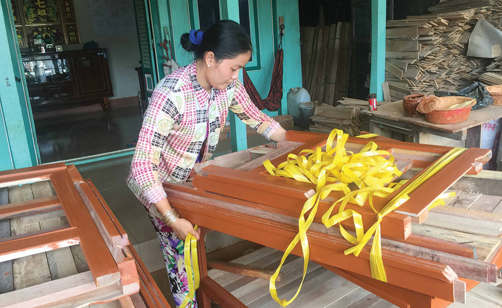 Theo ông Lập, nhờ có được nghề mộc, thu nhập được tính theo sản phẩm mà người dân địa phương gắn bó với xóm làng. Hiện nay, nhờ có máy móc hỗ trợ nên các công đoạn làm ra sản phẩm nhanh và đẹp hơn. “Ở đây, thợ sẽ có nhiều lựa chọn, có thể đến các xưởng mộc lớn để làm hoặc cũng nhận hàng về gia công. Người làm giỏi, một ngày thu nhập khoảng 200.000 đồng, còn nếu nhà đông người phụ tiếp thì thu nhập cao hơn” - ông Lập cho hay.