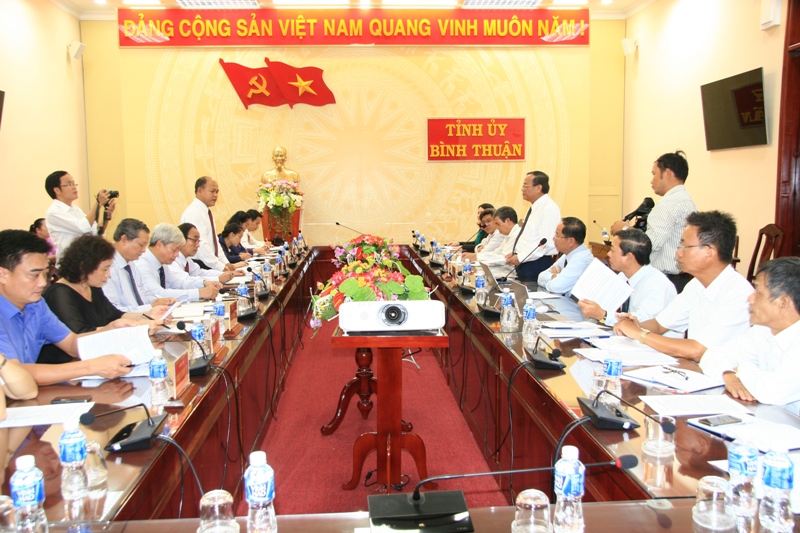 Tại buổi làm việc, Đoàn công tác đã nghe đồng chí Hồ Trung Phước - Ủy viên Ban Thường vụ Tỉnh ủy, Trưởng ban Tuyên giáo báo cáo về tình hình phát triển kinh tế - xã hội và hoạt động các cơ quan báo chí tại Bình Thuận.
