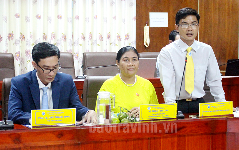 Lãnh đạo Phòng Công tác Sinh viên - Học sinh thông tin về tình hình học tập của sinh viên Campuchia tại Trường ĐHTV. Cụ thể, từ năm 2012 - 2022, có 126 du học sinh Campuchia tham gia học tập tại trường. Trường tạo điều kiện cho các lưu học sinh Campuchia học tập, sinh hoạt, ở ký túc xá của trường, hỗ trợ học tiếng Việt, tặng nhiều suất học bổng hỗ trợ sinh viên Capuchia…