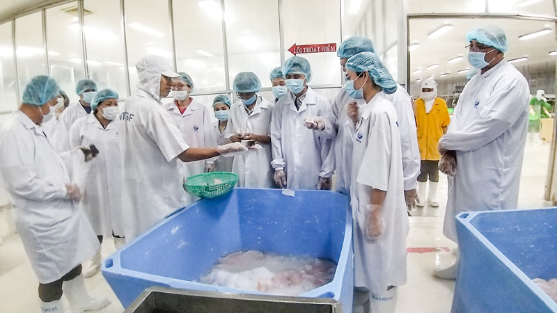 Tham quan dây chuyền chế biến cá tra phi lê tại Công ty cổ phần Thủy sản NTSF.