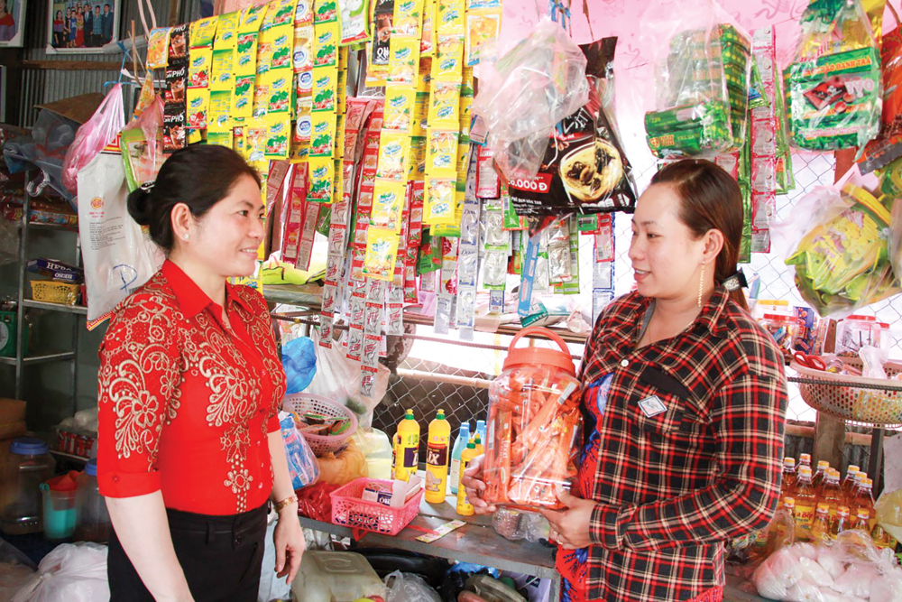 Chị Hà Thị Mỹ Tiên, ngụ ấp Vĩnh Qui, cho biết: "Trước đây, tôi quán xuyến nội trợ, chăm con. Chi tiêu sinh hoạt hằng ngày nhờ thu nhập nghề bán nước đá của chồng nên cuộc sống gặp nhiều khó khăn. Năm 2017, Hội Phụ nữ giới thiệu tôi vay 15 triệu đồng vốn NHCSXH, mở tiệm tạp hóa tại nhà. Hiện mỗi ngày, tôi thu lợi nhuận khoảng 200.000 đồng, cuộc sống ngày càng ổn định". Tương tự, chị Nguyễn Thị Hồng Hoa, ngụ ấp Vĩnh Long, được vay 10 triệu đồng vốn Ngân hàng Đông Á để mua bán phế liệu. Chị Hoa cho biết: "Trước đây, tôi làm công nhân. Sau khi sinh con, tôi ở nhà chăn nuôi heo nhưng không mấy thuận lợi do giá cả bấp bênh. Cách vài ngày, vợ chồng tôi đi mua phế liệu, được khoảng 700 - 800 ký thì đem bán. Mỗi tháng gom bán từ 1 - 3 đợt; mỗi đợt kiếm hơn 1 triệu đồng".