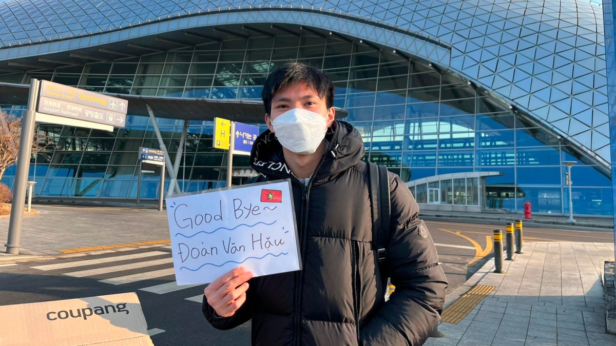 Đoàn Văn Hậu lên đường về nước sau hơn 2 tháng điều trị chấn thương tại Hàn Quốc. (Ảnh: Hà Nội FC)