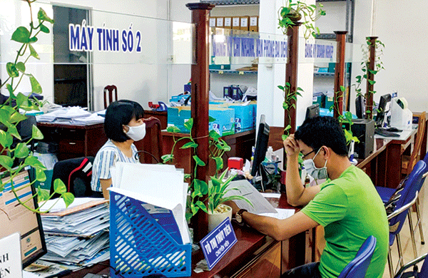 Thực hiện nghiêm túc việc đeo khẩu trang phòng dịch tại Bộ phận một cửa của Phòng Đăng ký kinh doanh.