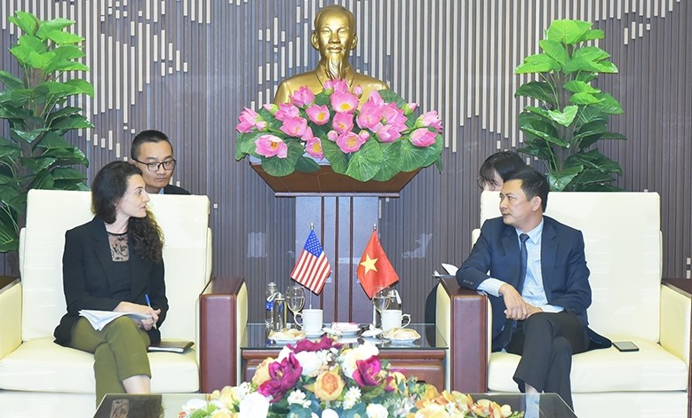 | Phó Chủ tịch UBND tỉnh Hà Tĩnh Lê Ngọc Châu và bà Carolyn Dubrovsky - Phó Tham tán Chính trị Đại sứ quán Hoa Kỳ tại Việt Nam (Ảnh: Dương Chiến) |