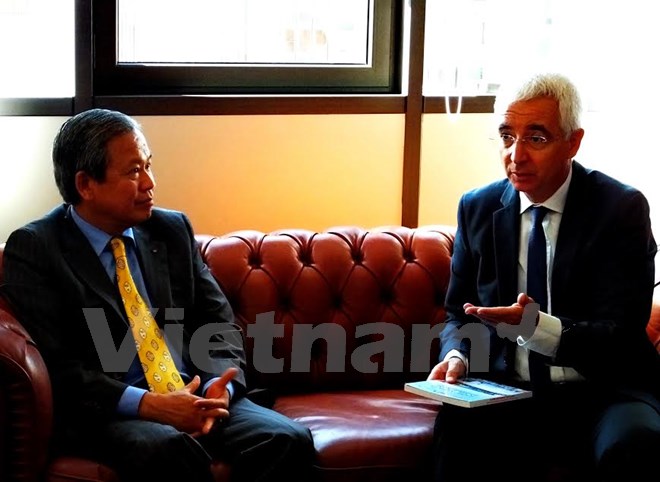 Đại sứ Việt Nam Cao Chính Thiện và phó Chủ tịch Vùng tự trị Sardinia, ông Raffaele Paci. (Ảnh: Quang Thanh/Vietnam+)