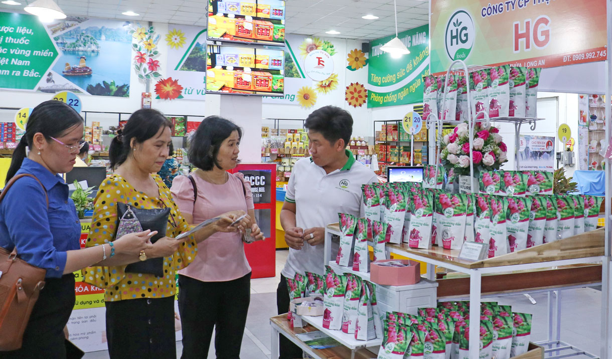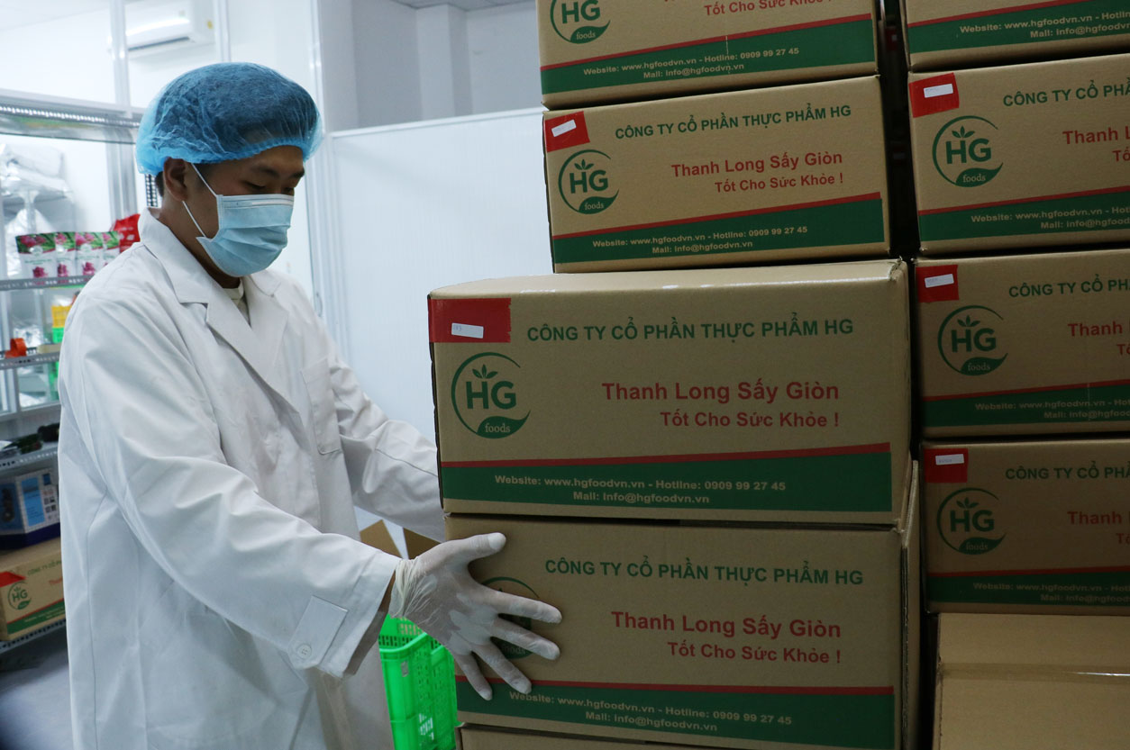 2. Những chính sách hỗ trợ, sự đồng hành của lãnh đạo tỉnh đã tạo động lực, góp phần tiếp sức để các DN vượt khó, nhất là vào dịp cuối năm. Là đơn vị sản xuất, cung ứng các sản phẩm trong lĩnh vực thực phẩm, Công ty (Cty) Cổ phần Thực phẩm HG (huyện Thủ Thừa) chuẩn bị đầy đủ nguồn nguyên, vật liệu để bảo đảm cung cấp đầy đủ hàng hóa ra thị trường. Bên cạnh sản phẩm tham gia cạnh tranh tại thị trường trong nước, Cty đang phối hợp một số đơn vị khảo sát nhu cầu, mở rộng, hướng đến thị trường thế giới. Anh Hồ Triết Hưng - đại diện Cty Cổ phần Thực phẩm HG, chia sẻ: Sản phẩm chủ lực của Cty là thanh long sấy, khóm sấy.