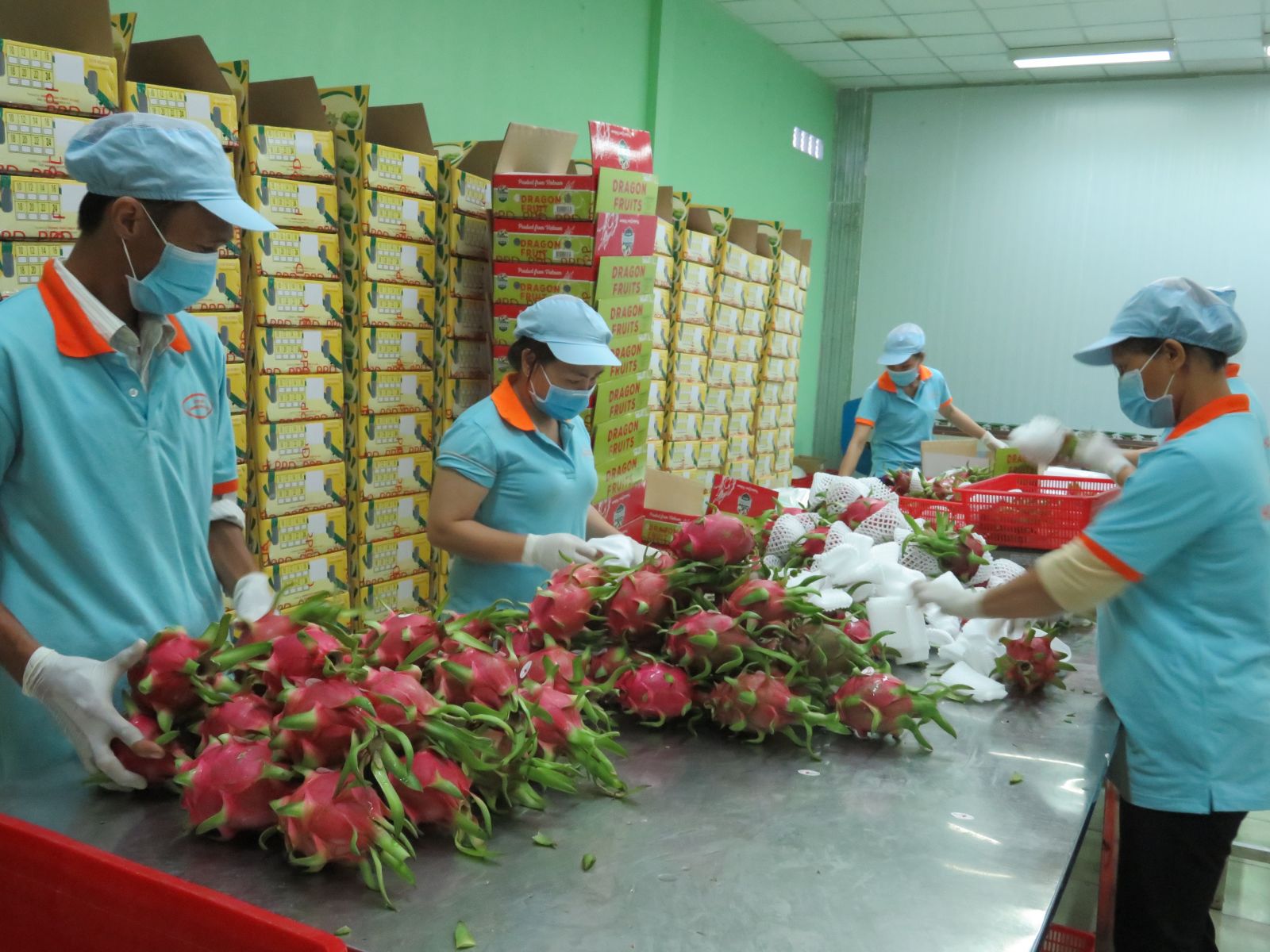 Thanh long được đóng gói tại nhà máy dành cho xuất khẩu sang thị trường EU