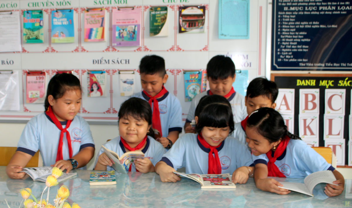 Cô Đỗ Thị Kim Tuyến - cán bộ Thư viện, Thiết bị, Trường Tiểu học thị trấn Thạnh Hóa, huyện Thạnh Hóa, tỉnh Long An chia sẻ: “Chúng tôi phải cập nhật thường xuyên sách mới để phục vụ các em. Toàn trường hiện có hơn 6.300 quyển, mỗi năm học bổ sung từ 300-400 quyển sách mới nhưng chỉ đáp ứng một phần yêu cầu của “độc giả nhí”. Do đó, nhà trường cũng tăng cường xã hội hóa và nhận được sự hỗ trợ từ Nhà Xuất bản Kim Đồng, Nhà Xuất bản Trẻ,... để có thêm nguồn sách cho học sinh. Nhằm thu hút học sinh, chúng tôi thường xuyên tổ chức các hoạt động: Ngày hội đọc sách, trưng bày sách ở sân trường, thi kể chuyện theo sách về Bác, đóng tiểu phẩm theo sách,... Chúng tôi còn cho các cháu giới thiệu sách mới vào buổi chào cờ, phát thanh măng non, dán ở bảng tin tuyên truyền,...”.