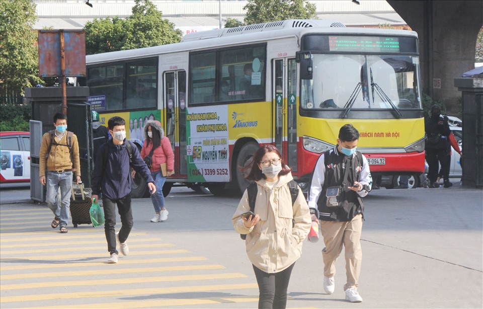 | Hành khách đổ về các bến xe tại Hà Nội để về quê đón Tết. |