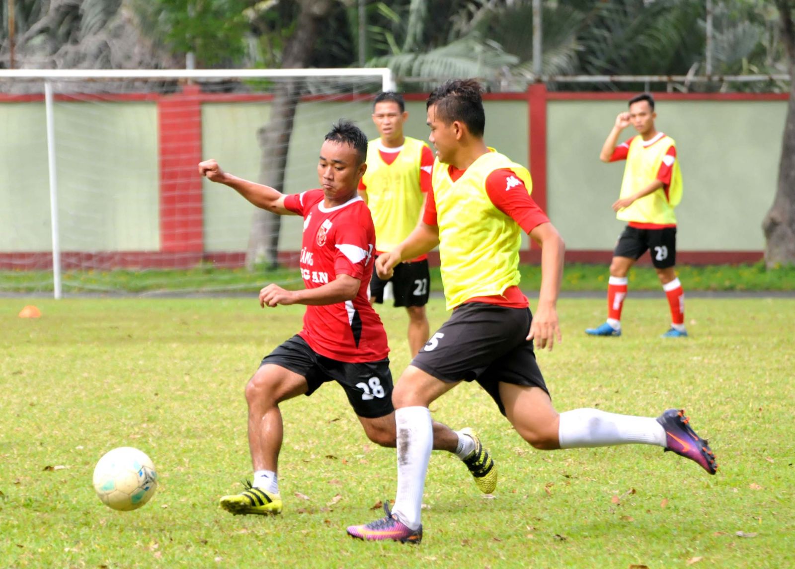 Các cầu thủ đội hạng Nhì Long An tập luyện trước trận đấu