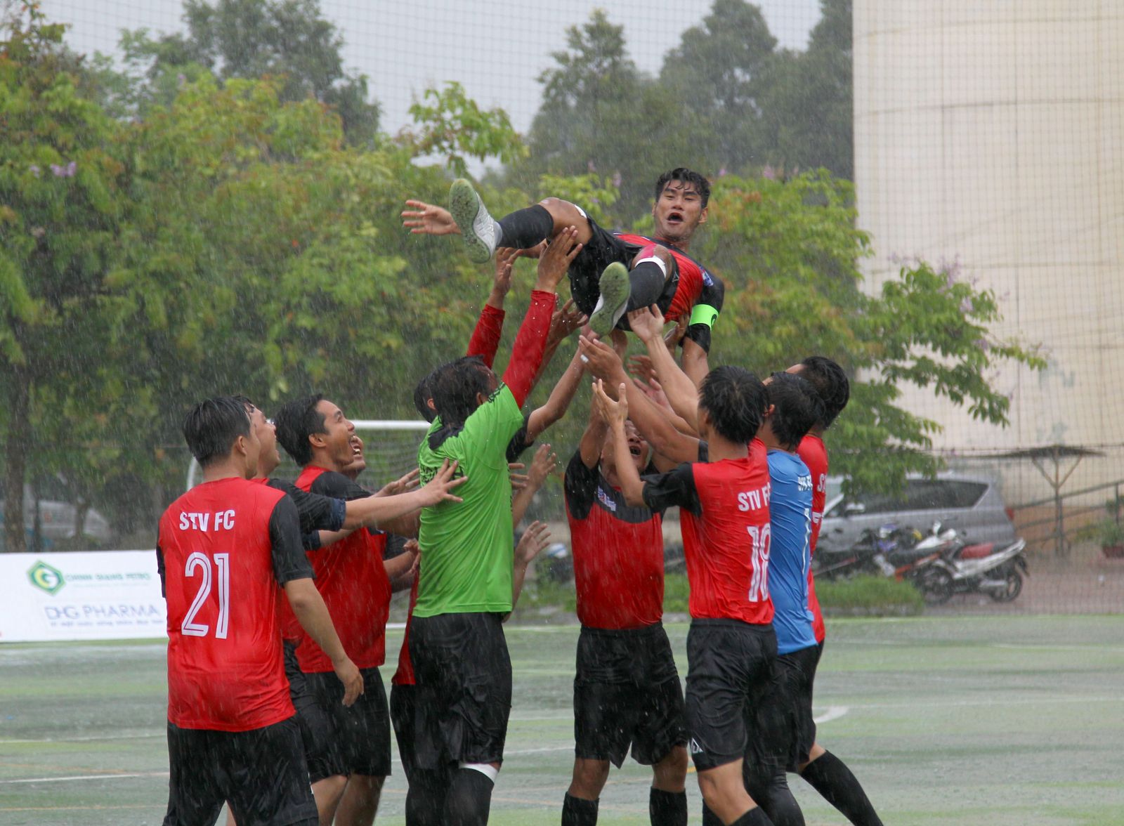 Các cầu thủ Đài PTTH Sóc Trăng mừng chiến thắng sau trận chung kết. Ảnh: Nguyễn Minh