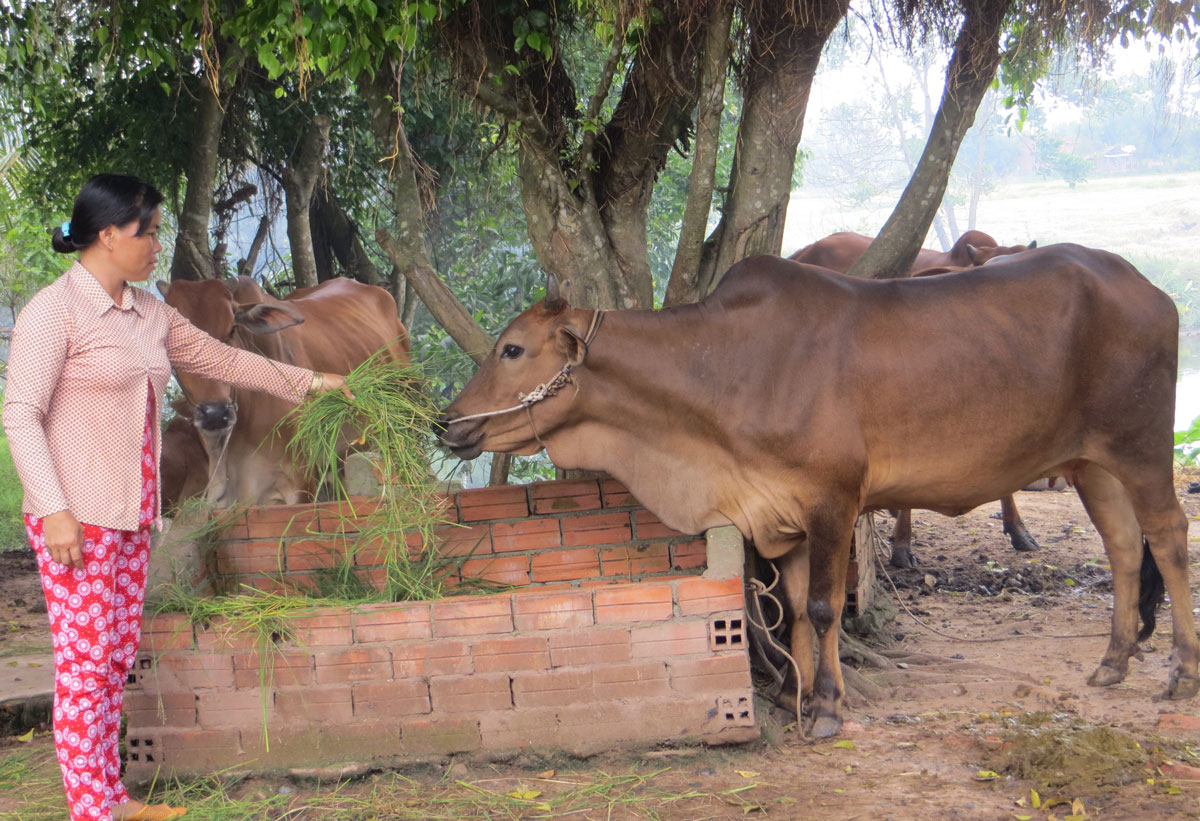 Đó là câu chuyện của trước kia. Bây giờ, vợ chồng chị Dương chuyển nghề chăn nuôi heo, bò. 5 năm trước, thay vì lặn lội mỗi ngày cuốc bộ gần 10km cõng mướn thuốc lá từ ấp 3 ra bến đò Ba Dồn thì bây giờ, ngày 2 buổi sáng, chiều, vợ chồng chị cùng ra đồng cắt cỏ mang về cho bò ăn. So với nghề cũ, cõng thuốc mướn, chăn nuôi vừa đỡ vất vả, vừa không nguy hiểm, chỉ cần có vốn và chí thú làm ăn là được.