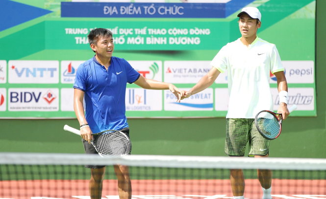 Đôi Hoàng Nam/Ouyang Bowen thi đấu chung kết giải Vietnam F4 Futures. Ảnh T.P
