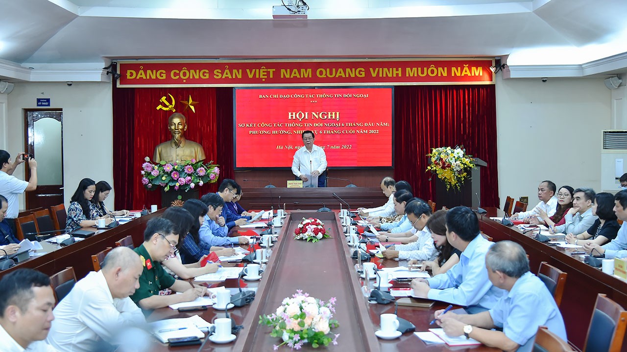 | Toàn cảnh Hội nghị sơ kết công tác thông tin đối ngoại 6 tháng đầu năm; phương hướng, nhiệm vụ 6 tháng cuối năm 2022 |
