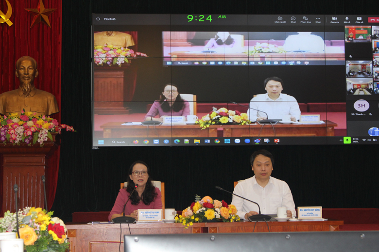 | Thứ trưởng, Phó Chủ nhiệm Ủy ban Dân tộc Hoàng Thị Hạnh và Thứ trưởng Bộ Thông tin và Truyền thông Nguyễn Huy Dũng đồng chủ trì Hội thảo tại điểm cầu Hà Nội |