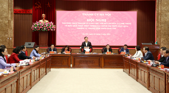 Ngày 3/3, Thường trực Thành ủy Hà Nội làm việc với Sở Văn hóa và Thể thao (VH&TT) về kết quả thực hiện nhiệm vụ chính trị thời gian qua, nhiệm vụ trọng tâm thời gian tới.