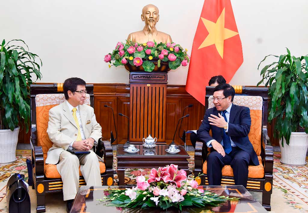 Tại buổi tiếp, Phó Thủ tướng, Bộ trưởng Ngoại giao Phạm Bình Minh chúc mừng Nhật Bản đã tổ chức thành công Hội nghị Thượng đỉnh G20; cảm ơn Chính phủ Nhật Bản đã đón tiếp trọng thị Thủ tướng Chính phủ Nguyễn Xuân Phúc tham dự Hội nghị Thượng đỉnh G20 và thăm Nhật Bản từ 27/6 – 01/7/2019. Phó Thủ tướng, Bộ trưởng Phạm Bình Minh bày tỏ vui mừng trước sự phát triển toàn diện và thực chất của quan hệ Đối tác chiến lược sâu rộng Việt Nam – Nhật Bản: tin cậy chính trị ngày càng được tăng cường, giao lưu cấp cao diễn ra thường xuyên; hợp tác quốc phòng – an ninh, kinh tế, thương mại, đầu tư không ngừng được mở rộng và đi vào chiều sâu.