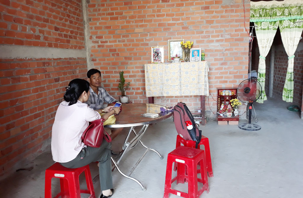 Thấy có khách đến nhà, anh Đoàn Văn Hương đang làm hồ gần đó vội về mở cửa, mời trà. Căn nhà mới xây của anh còn thơm mùi gạch mới, nội thất hầu như chưa có gì nhưng đó là tất cả gia tài của vợ chồng anh đến thời điểm hiện tại. Nhìn căn nhà mới cao ráo, thoáng mát, anh Hương nói: “Nhờ có chính quyền địa phương quan tâm vận động xây tặng vợ chồng tôi căn nhà tình thương, cả nhà mới thoát được cảnh nhà dột, cột xiêu. Có nhà mới rồi, vợ chồng tôi đi làm cũng an tâm, mùa mưa này không còn lo lắng gì nữa!”.