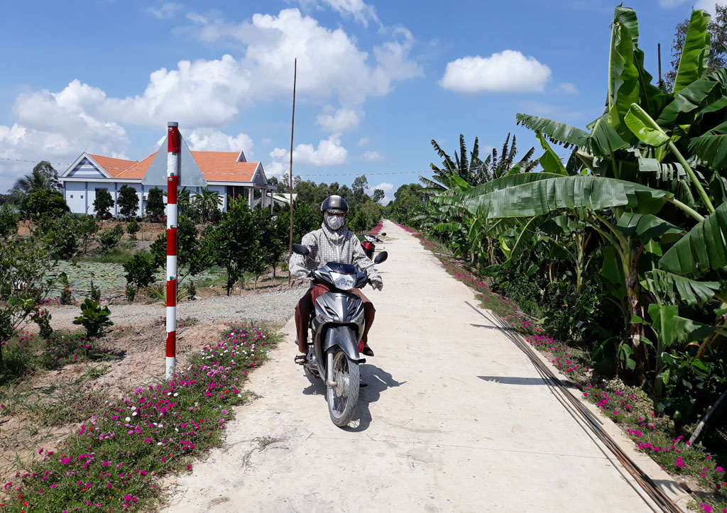 Đường bờ Nam kênh 7 Mét mới được đưa vào sử dụng, được người dân trồng hoa dọc 2 bên đường