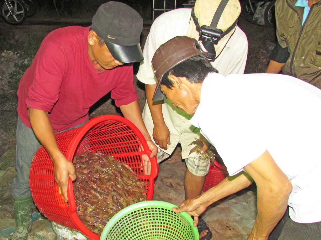 Nghĩ rồi làm, thấy việc nuôi tôm bên huyện Gò Công, tỉnh Tiền Giang mang lại thu nhập tương đối khá, một số hộ dân trong vùng thử nghiệm chuyển một phần diện tích trồng lúa kém hiệu quả sang thả nuôi tôm sú. Sau vài vụ, thấy con tôm thích nghi được với vùng đất này, người dân mở rộng diện tích nuôi. Những cánh rừng dừa nước bạt ngàn ngày nào, những vùng lúa kém hiệu quả dần nhường chỗ cho những vuông tôm. Bà Xem cho biết thêm: “Vụ tôm vừa rồi, với 0,5ha cho thu hoạch gần 3 tấn tôm sú, giá bán 280.000 đồng/kg, gia đình bà có lãi 400 triệu đồng. Còn 3ha chuẩn bị cho thu hoạch, hứa hẹn năng suất cao”.