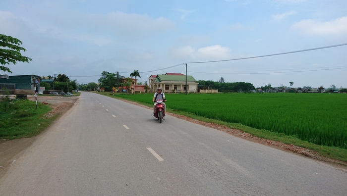 Dọc con đường nhựa nối liền xã Triệu Thành với thị xã Quảng Trị là cánh đồng lúa đang làm đòng xanh ngắt.